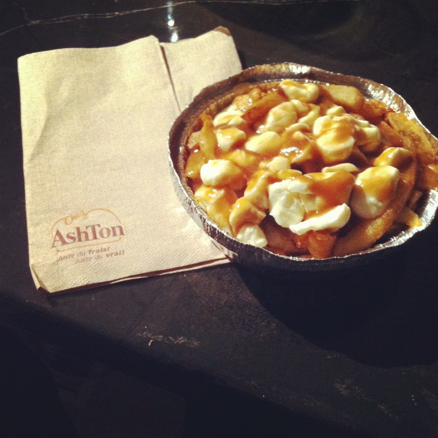 Lors d’un week-end à Québec pour visiter ma mère et ma meilleure amie, nous nous sommes arrêtées au Ashton (3065 chemin Ste-Foy à Qc) pour déguster une p’tite poutine après le show de Marie-Lise Pilotte (qui était très moyen BTW). Voici les résultats de notre poutine pour emporter :
