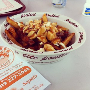 Pour finir en beauté la fin de semaine de fête d’Amélie, nous avons opté pour une poutine (la 2eme du week-end après celle faite maison par Amé et moi-même). Notre périple s’est donc terminé Chez la Mère au 4028 rue Masson. Le service était impec et je suis convaincue que ‘La mère’ est BFF avec Claudette, car elles se sont partagé leurs recettes de sauce à poutine (elles ont un goût de cardamone un peu). Voici notre verdict :