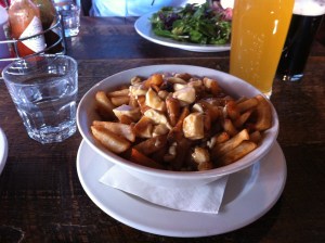 Après avoir fêté l’Halloween comme des pros à Québec, PL et moi méritions une bonne poutine. Après plusieurs recommandations de mes collègues du ‘South Shore’, nous sommes atteris au Mile Public House au Dix30. Vraiment belle place (ambiance et déco), mais seul bémol, nous voulions goûter aux****de bons nachos, mais ils sont seulement disponibles à partir de 15h. (mais C’EST QUOI LE RAPPORT ?) Ok, j’ai exprimé ma rage. Voici notre verdict :