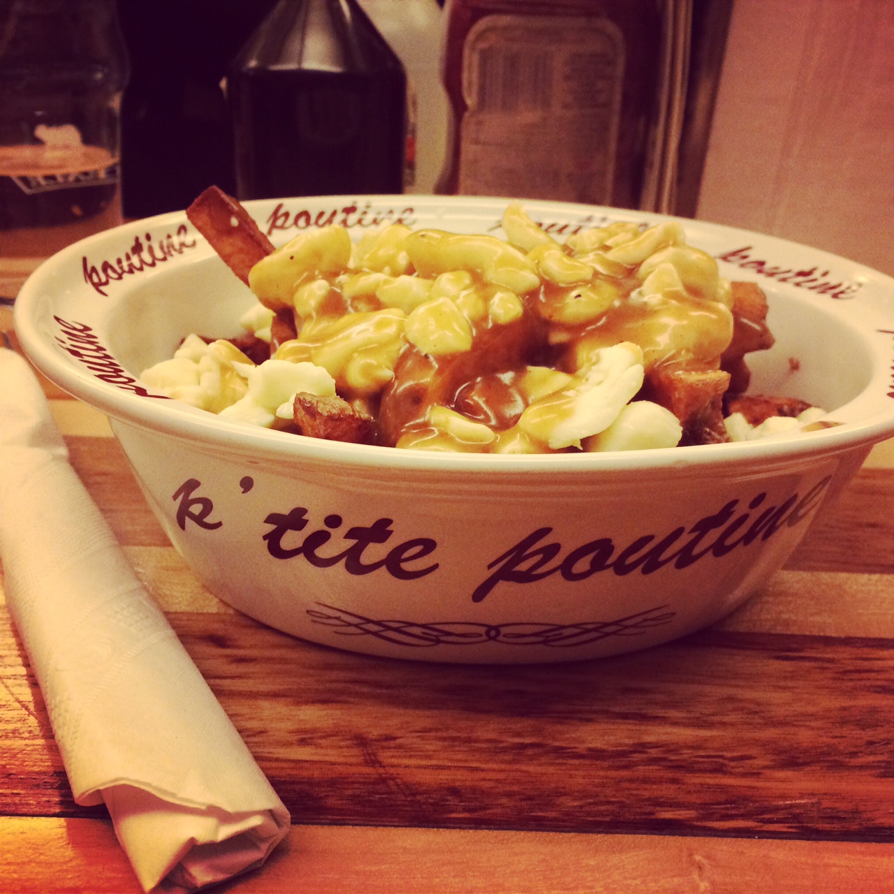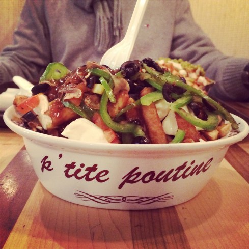 Après une grosse journée de travail, j’avais vraiment envie de manger une bonne p’tite poutine accompagnée d’une p’tite bière. Idem pour Élise (maudit qu’on est sur la même longueur d’onde). On s’est donc dirigées vers le Comptoir 21 (21 Saint-Viateur Ouest) pour déguster une p’tite poutine végé et des excellents Fish & Chips! Notre verdict :